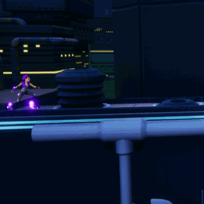 Now that the player had a streamlined system for activating abilities, I prototyped some new powers. This eventually led to Launch, a new power that throws the renegade up into the air, like a jump pad. Situations like falling through destroyed platforms, getting that extra height to reach a rail, or seeing that one collectable that was just too far up, were made much more achievable. The player now had complete freedom when deciding how to use their temporal energy.