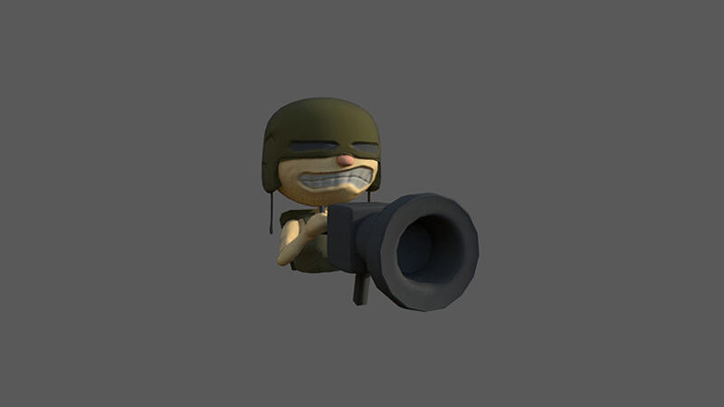 As with our protagonist, Svet, the gunners had humble beginnings. Their first iteration being the second thing on my priority list back at the game jam; there was a lot less time to work with.Alex had this idea floating around from when we were trying to come up with logos for our company, which was a silly looking head with an oversized army helmet. This became my basic art direction for the gunners.In the interest of rapid production during the game jam, the first gunners were basically just a head on a torso with arms and a massive helmet, I did give them a super quick face before moving on.