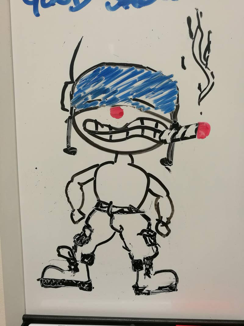We ended up with this; a rough, albeit fairly solid (if I do say so myself) design of our main character.