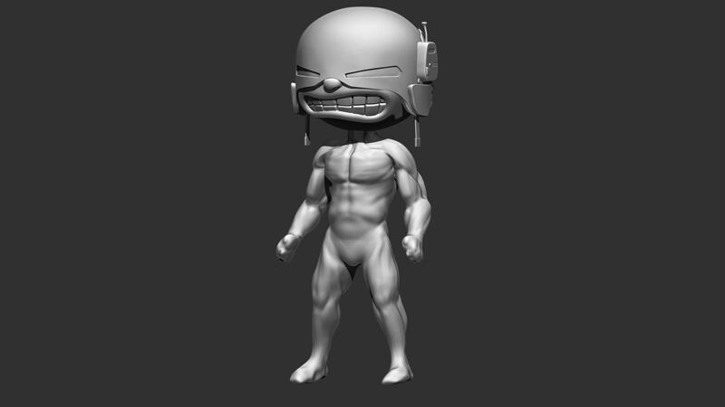 After getting some feedback from a few people, what I needed to do was push the stylisation and not just throw a hulked-out body on it just because I had one on hand. Amusing as it was, the fast ideation certainly helped with seeing what would and wouldn’t work.Thus, Grunt was born.