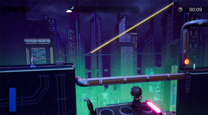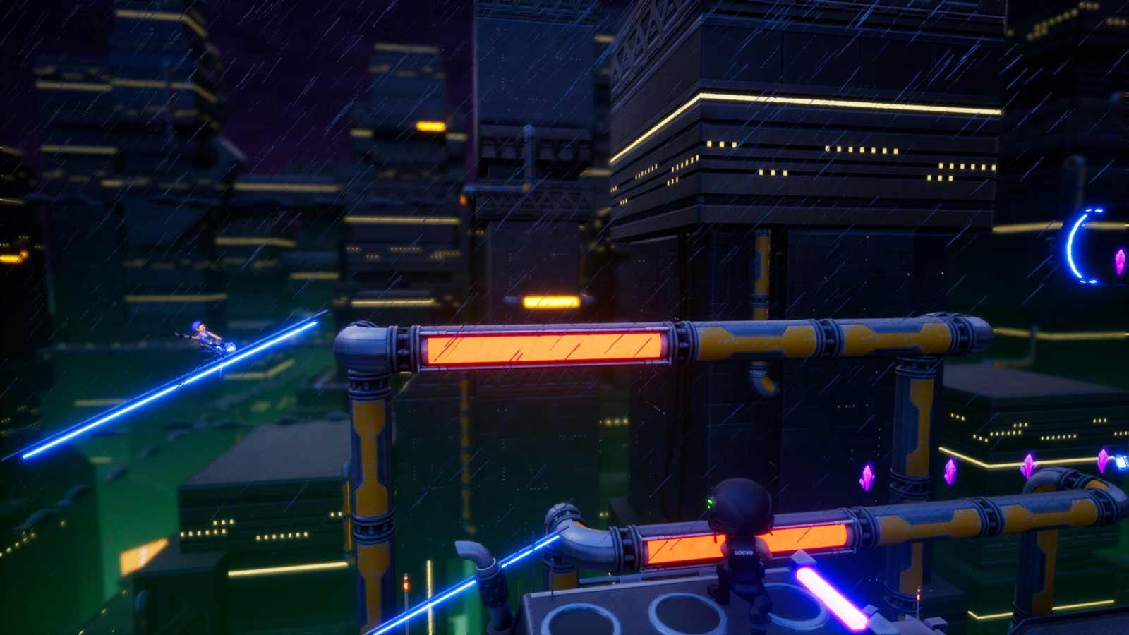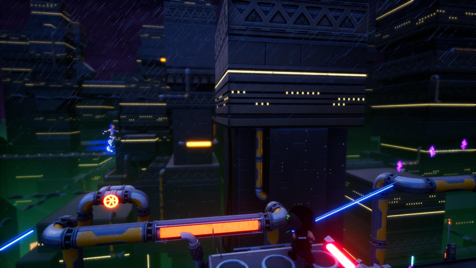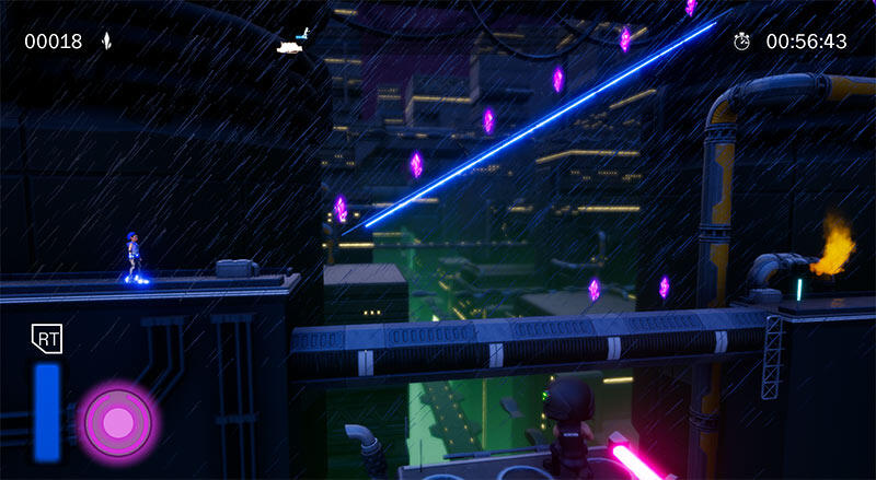 Using the power of the Chrono Kicks, players can pick which abilities to use to help their current situation. Fallen through a pipe? Launch will get you back up. Van about to catch up? Boost out of there! And of course, warping through hazards negates their effects entirely!