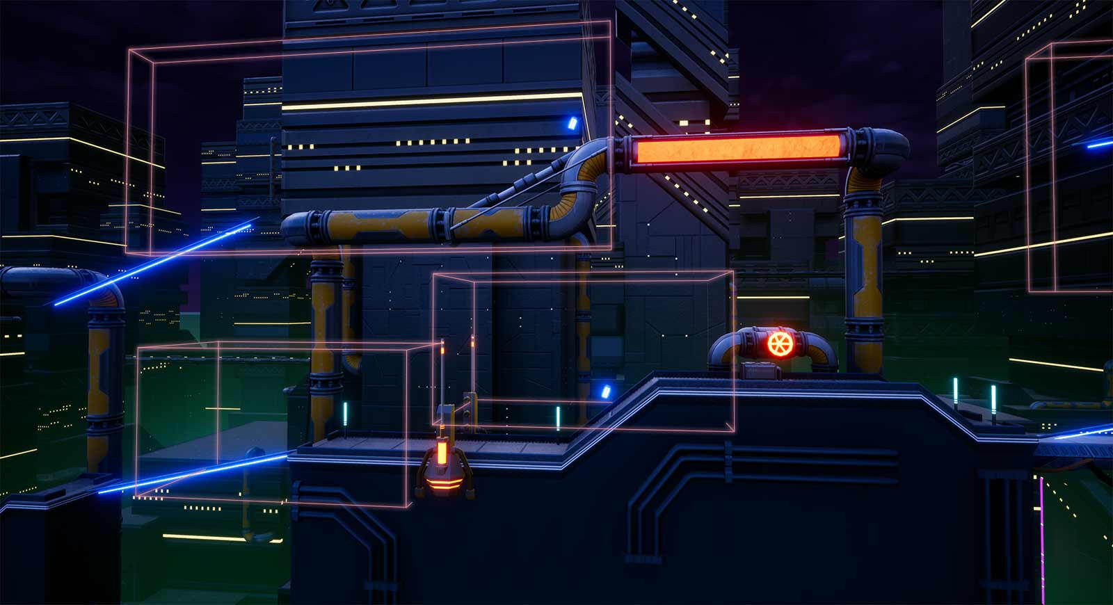 I had never created AI before, and when we debuted the single-player mode at AVCon, Jean was entirely for show. While to those playing the game, it looked like our antagonist was shooting hazards in their path and destroying them, behind the scenes it worked very differently. All that changed between our developer mode and this single-player experience was before the hazards self-detonated they would tell Jean to aim and shoot a harmless beam towards them before detonating themselves as they always had. Jean was only following orders from the hazards in the level and received all the blame.