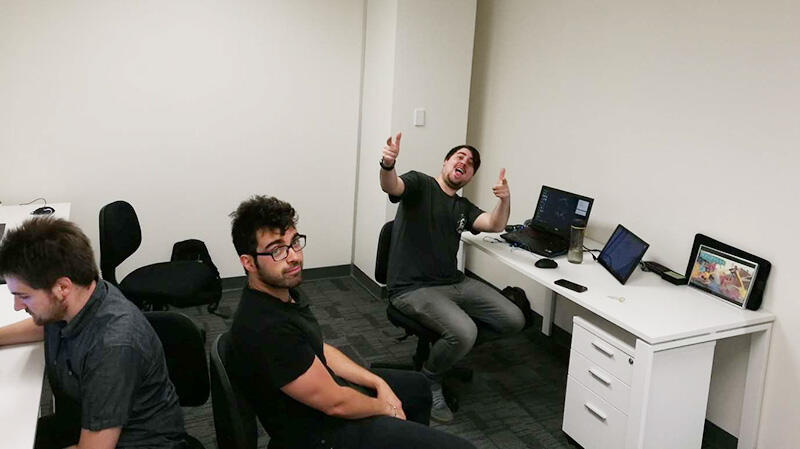It’s 2am in the dark of a parent’s loungeroom. AVCon 2016 opens in 6 hours, and a barely working game is compiling for deployment. Pat leans over the dark table, lit only by dim monitors, “Hey Frosty, let’s do this again but with a full game, we’ll be prepared now”. Sam takes a minute to process in his half-asleep state, “Yep, let’s find a team”.