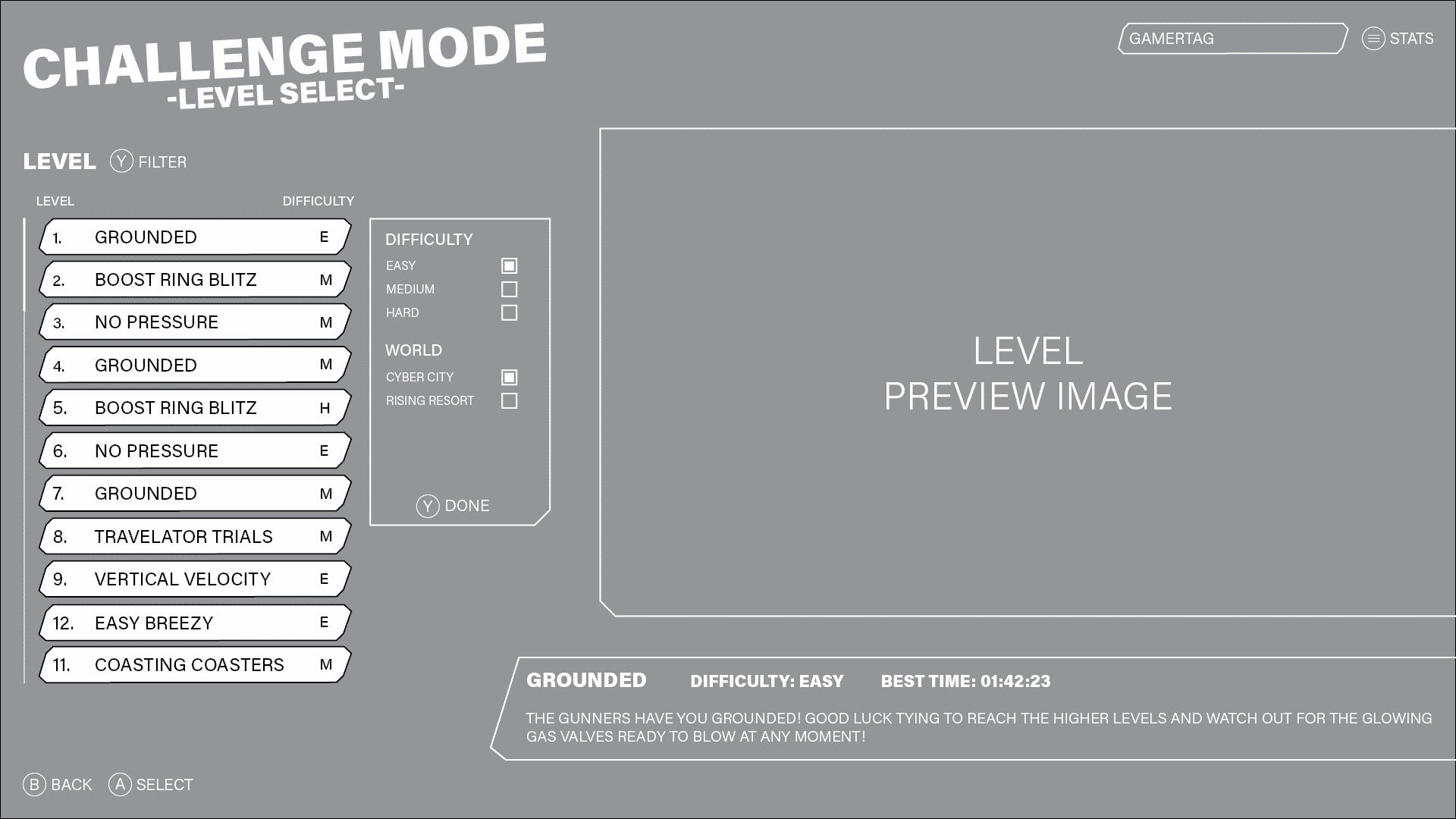 As the game’s designer, it’s my job to work out solutions to these kinds of problems, prototype them, and then pass them off to be implemented by either artists or programmers. The unfortunate reality of this job is that often I have to add to my own and the team’s already large workload. I remember less than a week before the event, tapping Alex on the shoulder, him already bracing for the bad news, “Hey Alex… we don’t have a score screen layout yet”.We managed to pull off a very strong week of fixes and additions in the lead up to the event. Using my new level building system I managed to build up a tutorial, and a much more friendly first level, which brought us to a total of four playable challenge levels at the event. Combined with Alex’s amazingly complex new version of the Cyber City environment, we had a great selection of playable content ready.We’ll be posting up blogs that go into the nitty gritty about these changes, so look out for those in the weeks to come!